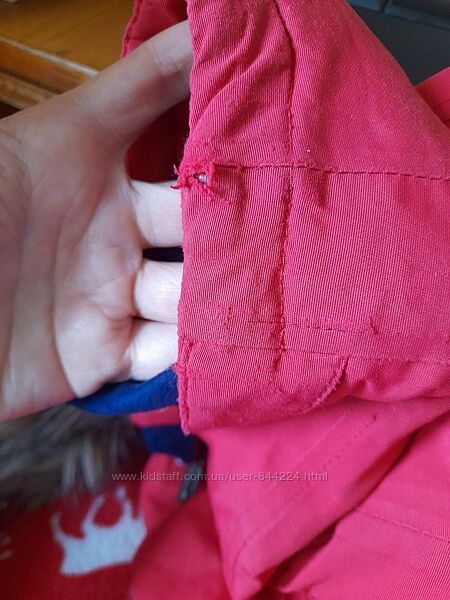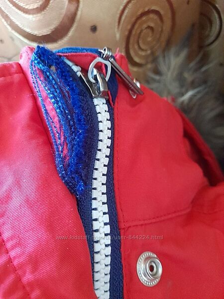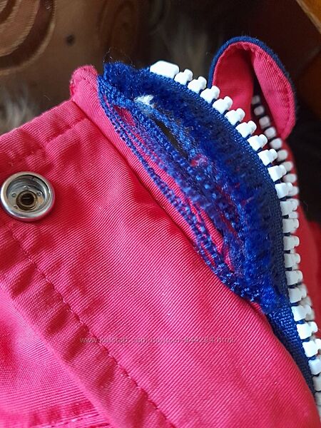 НЮАНСЫ - отпорота почти полностью одна липучка, частично растянута резинка нижней кулиски, слегка заношена, на манжетах и по швам чуть больше, на манжетах по швам есть протертые места, замок вверху частично рассатался, если брать как запасную, то сезон выдержит, тем более замок скрыт планкой, которая застегивается на кнопки и липучки. Показала на фото. В носке незаметно! Куртка выглядит прилично.