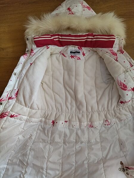 Продам зимове пальто Donilo розмір 140 в гарному стані.Капюшон відстібається, натуральне хутро на капюшоні теж відстібається, тканина швидко висихає після прання.
