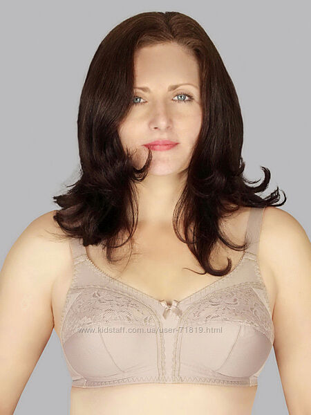 Бюстгальтер из эластичного полотна, трикотажного полотна и кружевного неэластичного полотна, без каркасов. Нижняя деталь чашек на подкладке из тканого хлопкового полотна.Размерный ряд : 75 - 85 GHIJ, 90 - 95 FGHIJ