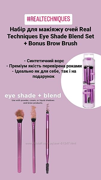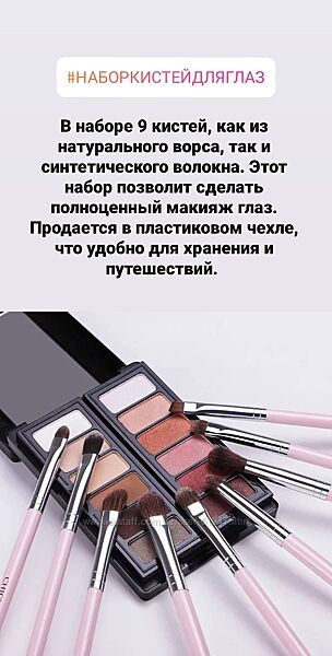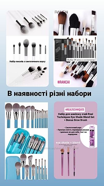 В наявності набори пензлів для очей. Дуже гарні набори гарної якості.Рекомендую, так як їх якість вище за їх ціну!
