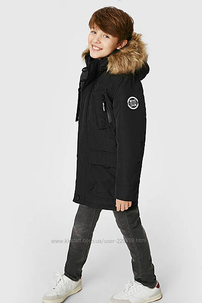 Зимняя теплая подростковая парка для мальчика C&A Германия р.146.158.,,,Плотный верхний материал. В рукавах трикотажные манжеты.Мех на капюшоне отстегивается.Внутренний накладной карман на липучке.Качество безупречное,покупкой останетесь довольны.Замеры: