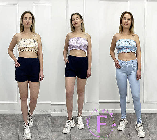 В самые жаркие летние дни наш интернет-магазин представляет поклонникам качественных вещей стильную и утонченную новинку – короткий топ с рюшами Ruffie. Эта модель сочетает в себе трендовую отделку, интересный крой и 3 вида модного принта – в горошек, с розочками и цветочным.