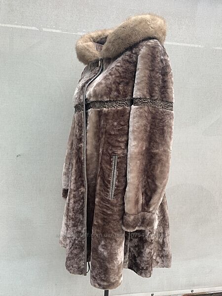 Шуба отличного качества красивый крой цвет из натурального меха с перламутровым оттенком, мутон комбинирован с норкой на объемном капюшоне, верхняя имеет вставку из мягчайшей каракульчи, крой свободный , отделка планет и карманчиков из натуральной мягкой кожи . Эксклюзивный экземпляр , замеры плечи 40 пог 55 пот 60 поб 80 низ 100 рукав 67 длина 95 , размер 46-48 наш, ориентируйтесь по замерам, подкладка двойная, можно увидеть состояние меха изнутриДругие объявления продавца