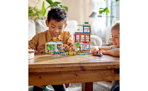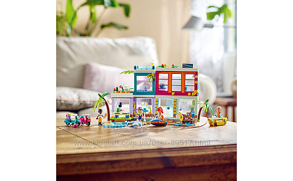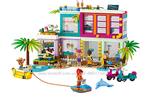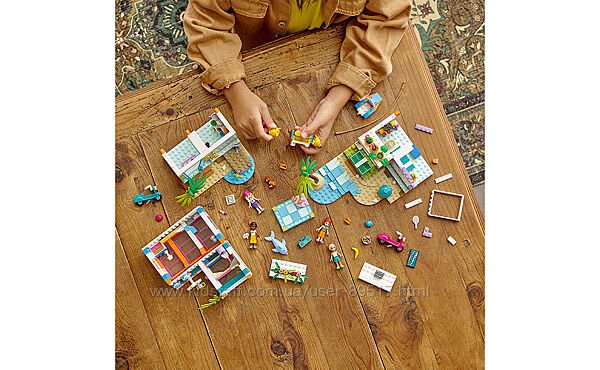 Творчі аксесуари - від контролерів для приставки до столу для настільного тенісу та повітряного насоса, щоб накачати банан: до набору входить безліч елементів, що допомагають розвивати уявуВесела ідея подарунку на день народження для дітей від 7 років — знаєте дитину, яка любить грати в будиночки або іграшки на пляжну тематикуЗручні розміри - якщо зібрати набір як двоповерховий будинок, то його висота складе більше 18 см, а ширина - 26 см , але розміри змінюються, якщо діти змінюють конфігурацію цього веселого, творчого та модульного подарункаСвіт веселощів та дружби — покажіть дітям веселий світ Хартлейк Сіті, де вони дізнаються, як чудово можна проводити час із друзямиВисока якість - всі елементи LEGO® Friends відповідають найсуворішим галузевим стандартам, тому вони надійно поєднуються в міцні конструкціїБезпека гарантована - нові іграшки LEGO® тестуються максимально ретельно, щоб переконатися, що вони відповідають найсуворішим глобальним стандартам безпеки