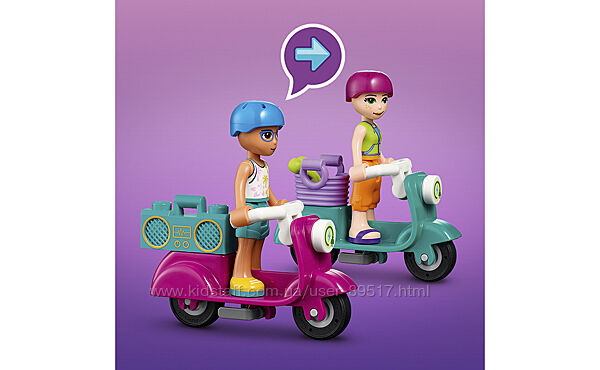 Дайте старт творчості — модульний ігровий набір «Пляжний дім для відпочинку» LEGO® Friends (41709) дарує дітям годинник веселощів, дозволяючи їм перебудовувати модель у дві або три окремі будівлі на свій розсудНаповнений елементами для гри — в будинку є спальня з ванною кімнатою, кімната з двоярусними ліжками, балкон і басейн на даху, вітальня з диваном-ліжком, кухня, а на вулиці — два електроскутери та надувний бананНабір LEGO® Friends у подарунок із шістьма персонажами — у наборі «Пляжний будинок для відпочинку» (41709) є 4 міні-лялечки , у тому числі Мія LEGO Friends, а також фігурки дельфіна та кішки