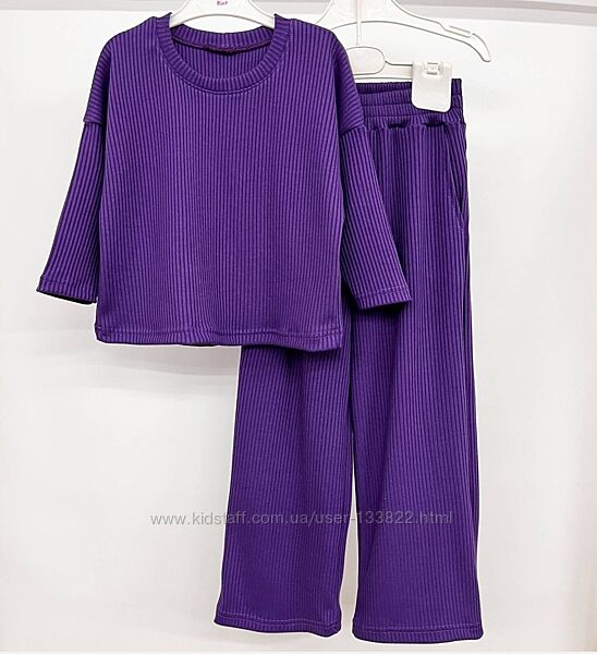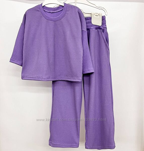 Костюм для дівчинки (Джемпер вільного покрою,спущене плече, рукав 3/4 укорочений, штани палацо з завищеною лінією талії, покрій вільний, розшируються відразу від пояса) підійдуть для дітей від 4-5 років до 12-13 років.