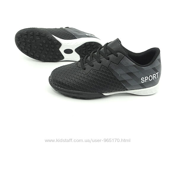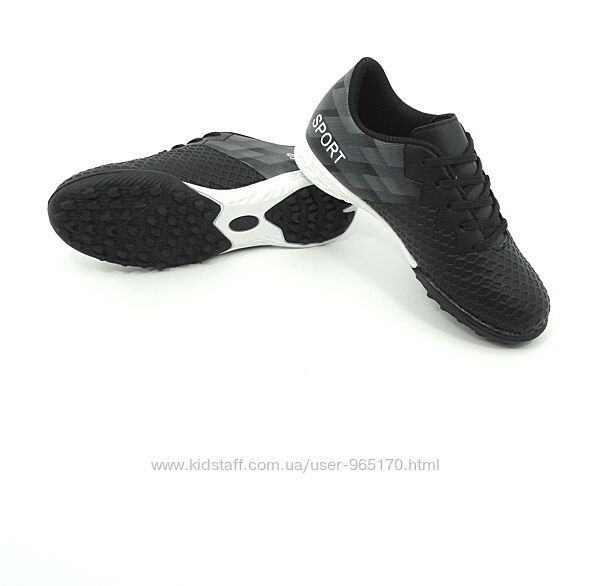 Дитячі стоноги взуття для футболу, для гри на штучних і природніх твердих покриттях. Верх моделі - штучна шкіра, підошва з міцної гумової суміші, носок прошитий. Спеціальне розташування шипів значно підвищує стійкість під час гри, забезпечує відмінне зчеплення навіть з вологими поверхнями, максимально розподіляє навантаження на стопу.