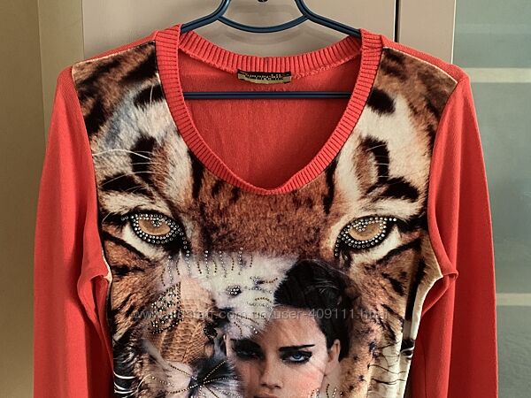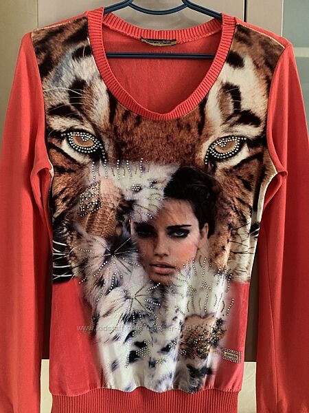 Кофта с велюром в стразах Amarchik цвет кораловий размер 44-46 производитель Турция (состав ткани 90%вискоза, 10%эластан). Кофта в очень хорошем состоянии без катышек, все камушки присутствуют, цвет не утерян.Замеры: