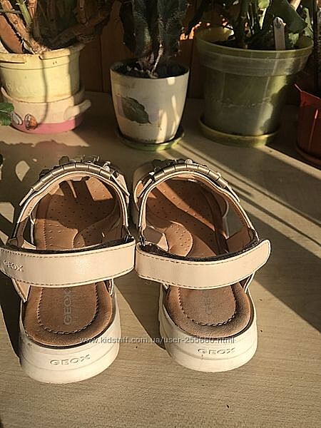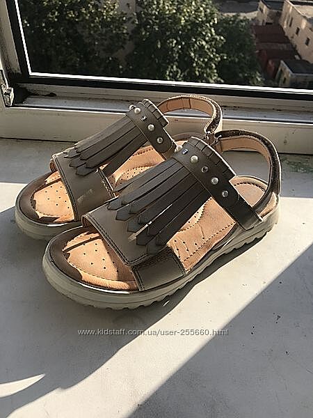 Очень симпатичные бежево-золотистые босоножки GeoxДышащая подошва,кожа внутри и снаружи, есть супинатор, на застежках-лиучках, в отличном состоянии