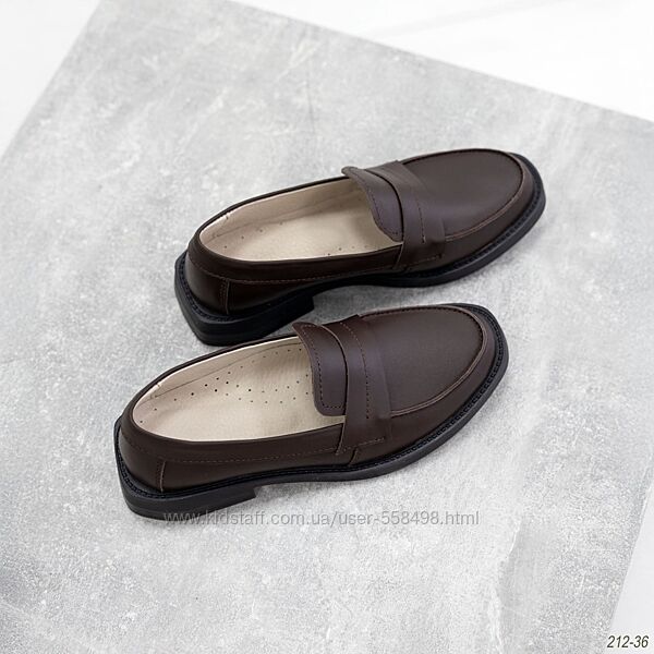 Подробное описание: Жіночі шкіряні туфлі лофери коричневого кольору