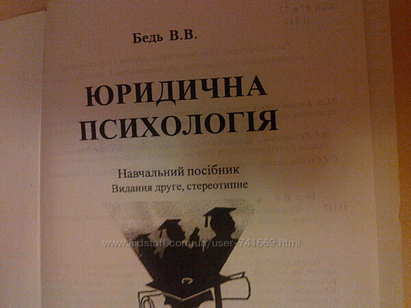 Посібник призначений для студентів, слухачів, курсантів аспірантів і викладачів юридичних вищих навчальних закладів і факультетів. Він може бути корисний працівникам правоохоронних органів і всім, хто цікавиться проблемами юридичної психології.