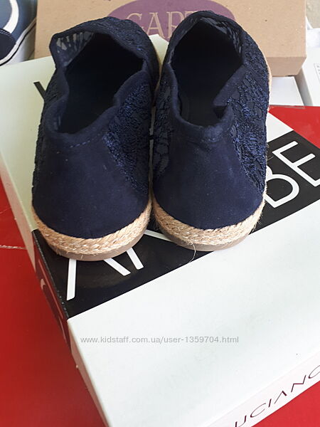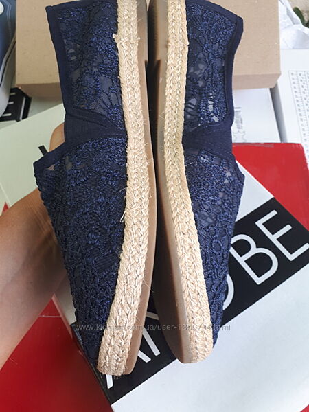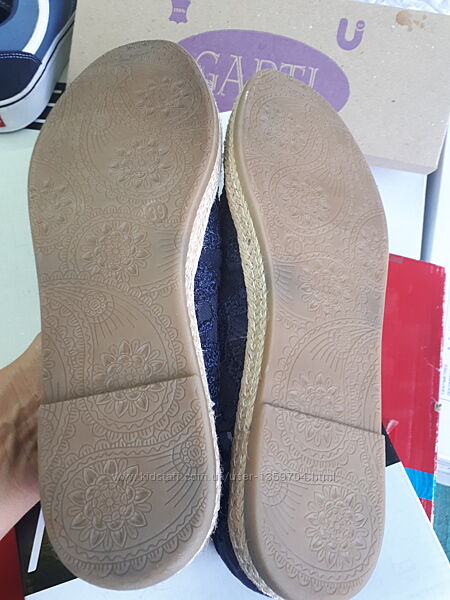 Дуже гарні та зручні, якісні еспадрільі-балеткі з синього набивного мережева на сітчастій місіновій підкладці, по обудку джутова прошита стрічка, підошва з поліуретануразмір 39 устілка рівно 25см, ширина 9см