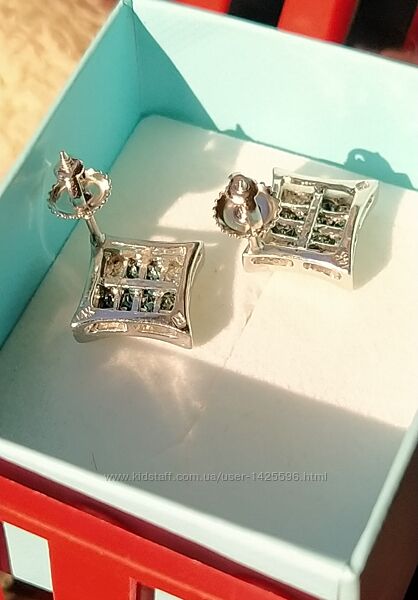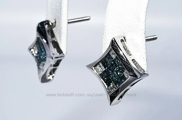 Оригинальные серьги-пусеты белого золота 14 карат (585) с натуральными белыми и голубыми бриллиантами огранки Принцесса общей массой 1.36 карат. Голубые бриллианты - 24шт., чистотой VS2-Si2 (4-5) и 8 белых бриллиантов - с характеристиками H/VS2-Si2 (3/4-5). Все бриллианты искрящиеся, блескучие. Есть короткое видео. Надёжные закрутки. Размер серёжек 10.3*10.8(10.9)мм, приличный вес - 3.36 грамма. Стоимость только золота составляет 3,09*80$=247,20$. Быстрая продажа - скромная цена (700$). Смотрите все мои объявления.