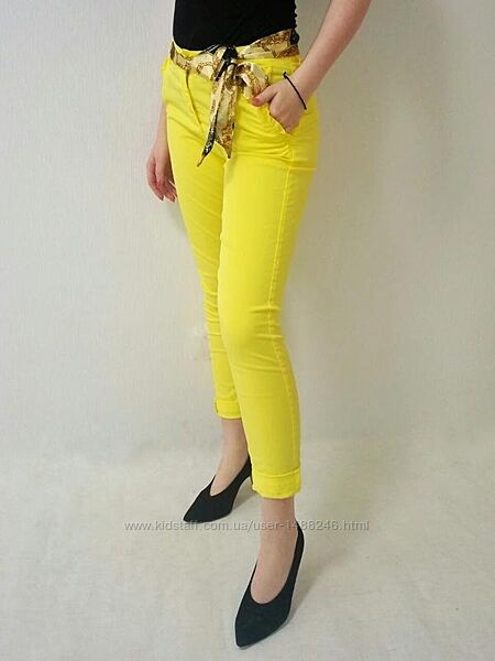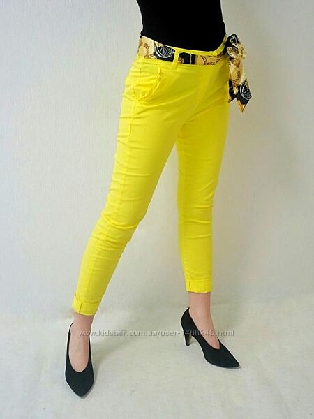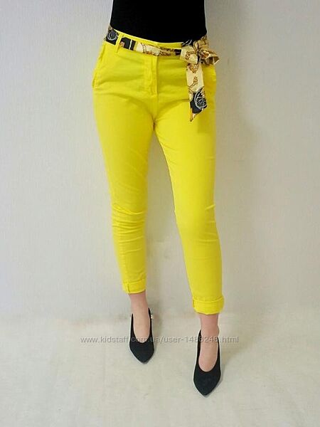 Брюки котоновые желтого цвета с пояскомСостав: 95% хлопок, 5% эластан