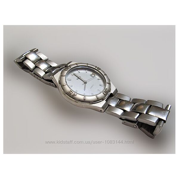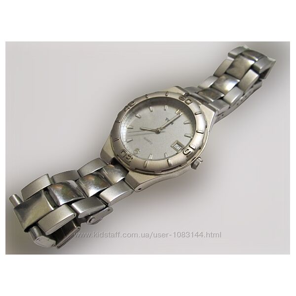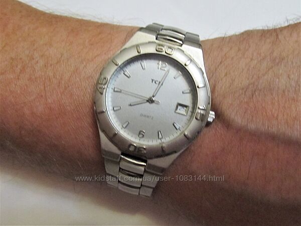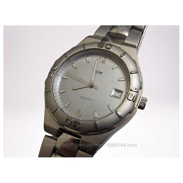 Мужские наручные часы немецкого бренда ТСМ Tchibo. Скромные, но со вкусом, защищенные от ударов и в определенной степени от воды, на металлическом браслете. Высокоточный кварцевый механизм,собранный из швейцарских деталей. Основное их достоинство - доступная цена, стиль, добротность. Часы, почти в полном объеме изготовлены из нержавеющей стали с декоративным покрытием. Классический стиль, популярный всегда и везде, подчеркивается аналоговым дисплеем - циферблатом с тремя аккуратными стрелками (покрытыми фосфор-подобным составом), традиционным обозначением промежутков времени, отметкой чисел месяца в окошке на циферблате. Страна-производитель - Германия Механизм - кварцевый с часовой, минутной и секундной стрелками Тип циферблата - стрелочный Стиль - классический Сasual Функции - дата Тип крепления - браслет Стекло - минеральное Материал корпуса - нержавеющая сталь Цвет циферблата - серый Цвет браслета - серебристый Цвет корпуса - серебристый Застежка - раскладная с замком-фиксатором Материал браслета - нержавеющая сталь Ширина браслета - 18 мм Длина браслета - около 19 см Размер корпуса(ШхВ) - 37х9 мм Особенности модели - безель неповоротный Состояние:часы рабочие,легкое б/у,без коробки
