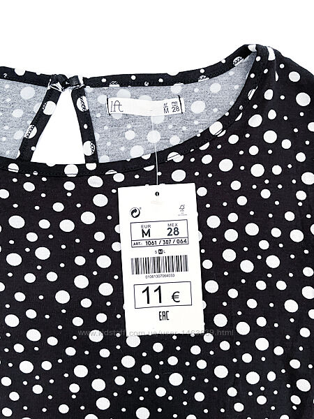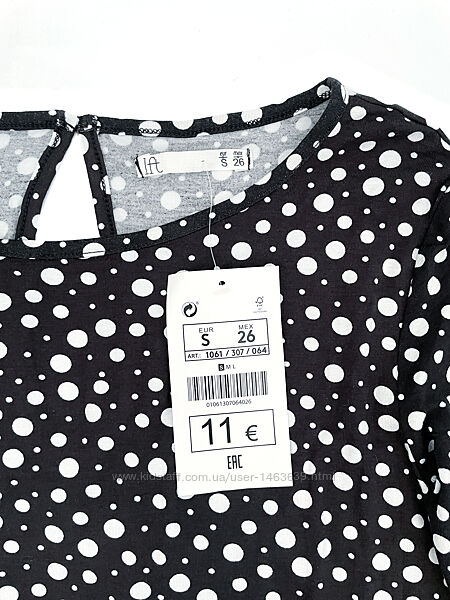 Стильное трикотажное платье в горошек от испанского бренда Lefties.Модель с рукавом 3/4.