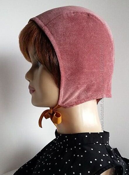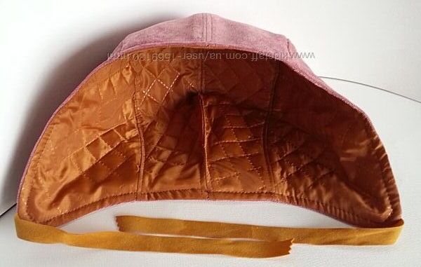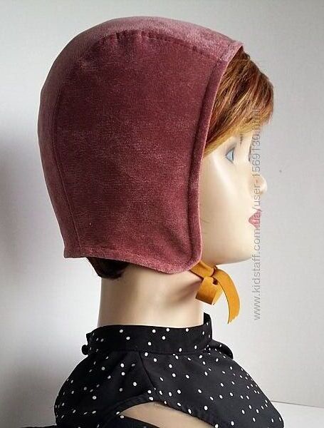 * Боковые стенки шлема переходят в ушки. Застежка - хлястик выполнена из замшевых завязок в тон основной ткани.