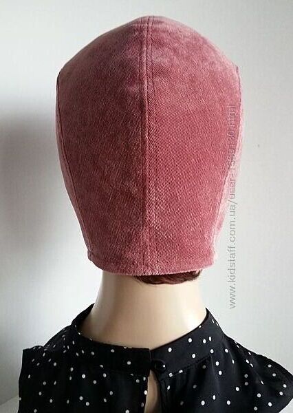 Шапка. Шлем. Женская. Микровельвет мраморный. Амарант. Хит сезона.