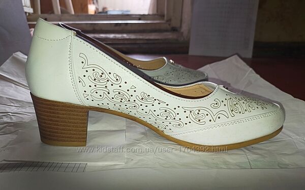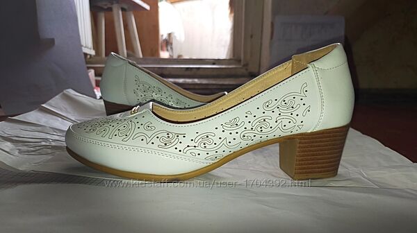 Широкий стійкий каблук, висота - 4 см.Стійка не слизька підошва.