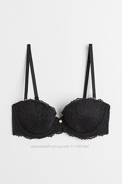 Бюстгальтер-балконет H&M из кружева с мягкими чашечками на косточках, на подкладке, которые приподнимают и формируют грудь. Съемные регулируемые бретели и широкая застежка на крючки сзади. Бретелей в комплекте нет!!! Размер 75С. Смотрите замеры чашки на фото. Длина пояса в спокойном состоянии 65см, тянется до 81см. СТОК. Состояние нового, без бумажных бирок. *** Оплата на карту Приватбанка. Доставка Новой почтой, Укрпочтой. Оплата за доставку - при получении. Возврата и обмена нет.