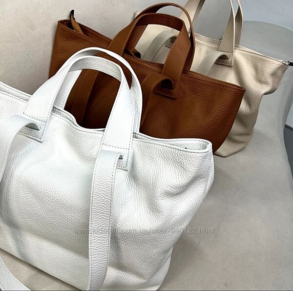 Подробное описание: Большая кожаная женская сумка шоппер Италия белая сумочка мягкая на плечо