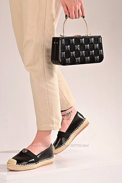 Женские балетки-эспадрильи с джутовой веревочной основой в качестве подошвы – маст-хэв в гардеробе модниц, альтернатива туфлям. Плоская подошва, спереди декорированы железной эмблемой.Материал: искусственная кожа