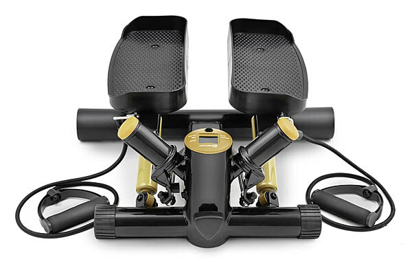 Степпер Hop-Sport HS-035S Joy Ефективний тренажер для домашніх тренувань, який допоможе вам зміцнити м'язи сідниць, ніг і схуднути. Тренуючись на цьому тренажері, ваші ноги рухаються в двох площинах: вгору - вниз і зовні - всередину. Завдяки цьому тренування нагадує катання на ковзанах або лижах, під час яких працюють практично всі м'язи. Перевагами тренажера є регулювання висоти педалі і простий у використанні лічильник, який вимірює найважливіші параметри тренування. Крім того, завдяки двом прикріпленим еспандерам ви також задієте верхні частини тіла. Вправи на степпері рекомендуються всім, хто хоче поліпшити фізичну форму і спалити зайві кілограми - незалежно від віку та рівня підготовки.