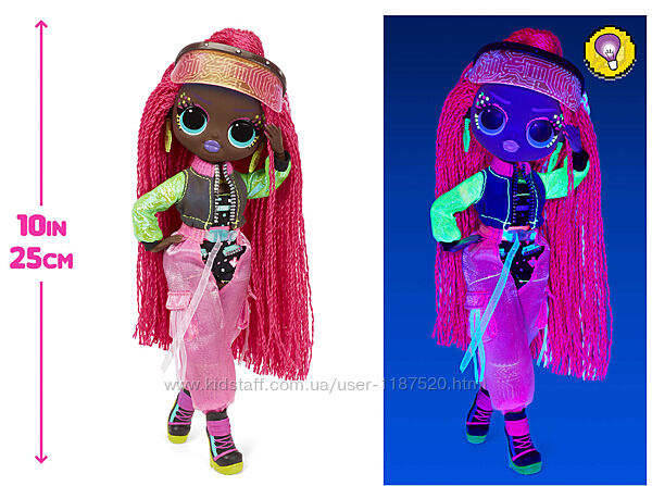 15 сюрпризов при распаковке кукол серии «O.M.G. Dance».Направьте свет ультрафиолетового фонарика на куклу O.M.G. и ее одежду, чтобы увидеть сюрприз.