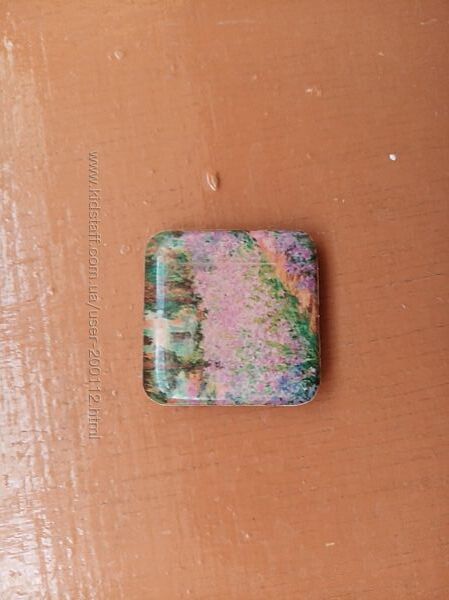 7) Магніт на холодильник 2 на 2 см. Стан нового, але без упаковки. Намальований пейзаж. Щось типу кераміки або пласмаси полакованої.