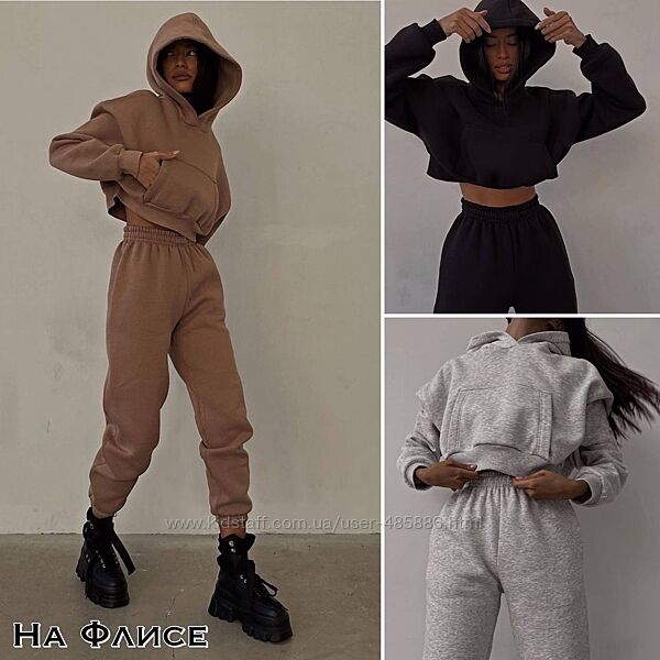 КостюмНереально стильные костюмы на флисе (кроп худи+джоггеры)