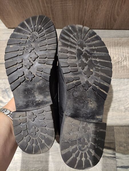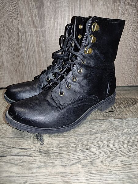 Отличные демисезонные ботинки New Look из искусственной кожи. Внутри баечка. Состояние отличное, легкое б/у.Размер 38, фактическая длина стельки 24 см. Высота каблука 3 см. Высота ботинка по пятке сзади 15 см.