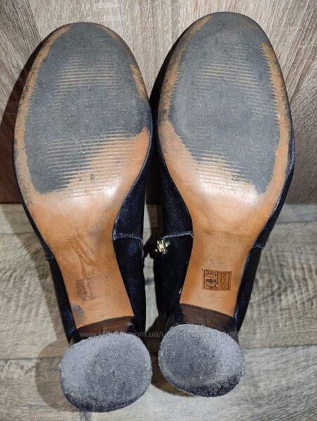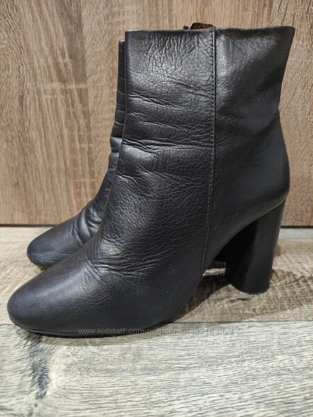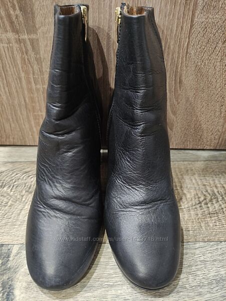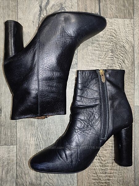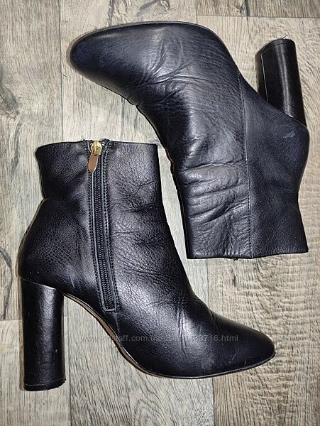 Классные, добротные демисезонные ботинки на устойчивом каблуке. Натуральная кожа, фирма Topshop, сделаны в Испании. Состояние хорошее. На фото реальное состояние, без косметики. Обработать обувным кремом и будут вообще супер.Размер 38, фактическая длина стельки 24,5 см. Высота каблука 9 см. Высота ботинка сзади от пятки 12 см.