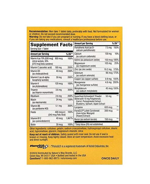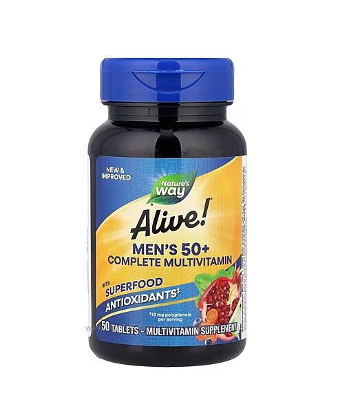 # Nature´s Way, Alive! комплекс вітамінів та мікроелементів для чоловіків старше 50 (50+), 50 таблетокОптимізовано для чоловіків віком понад 50 років. Спеціально збалансований для підтримки: