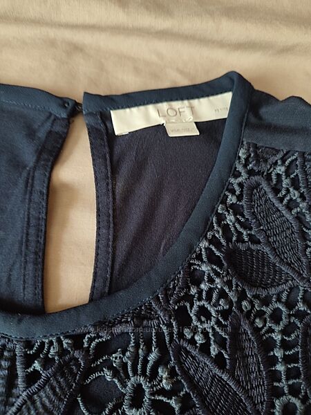 Шикарний топ з гипюру Loft багатого темно синього кольору, спинка трикотаж, підкладка зпереду на весь топ також тоненький трикотажрозмір XS