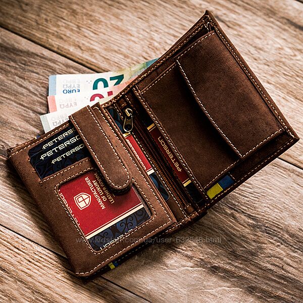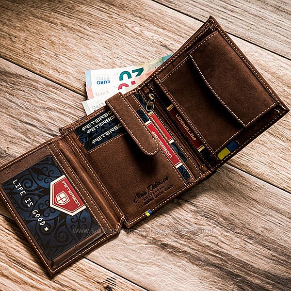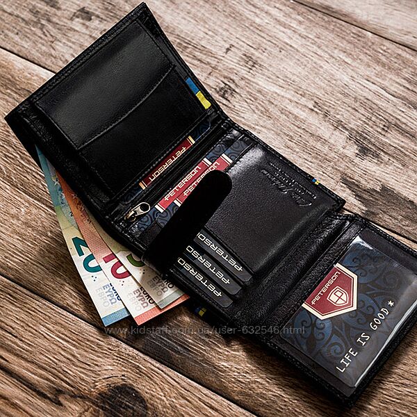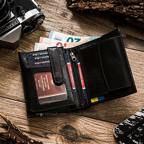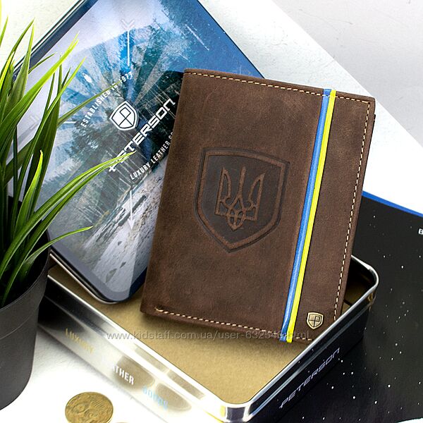 Подробное описание: Портмоне чоловіче шкіряне Peterson з тризубом у коробці
