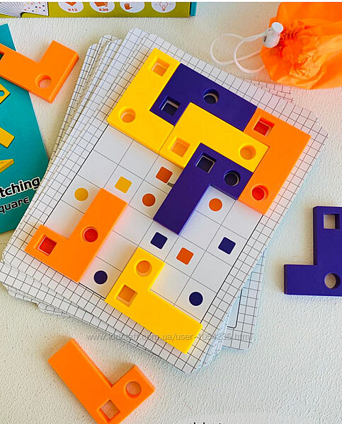 2. Настольная игра-головоломка "Тетрис". В наборе 30 карточек с заданиями, 12 фигур разных цветов и конфигураций, мешочек, книжечка с ответами. Суть игры: необходимо разместить все фигуры на поле, уложить необходимо так, чтобы все фигуры и цвета совпали и поместились все фигуры. Ребенок будет искать решение, развивать логику, память, моторику и усидчивость. Возрастная категория 3+. Цена: 400 грн.