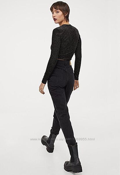 Подробное описание: Топ, джемпер укороченй, лонгcлів жіночий велюр/ бархат з блистінками H&M 09