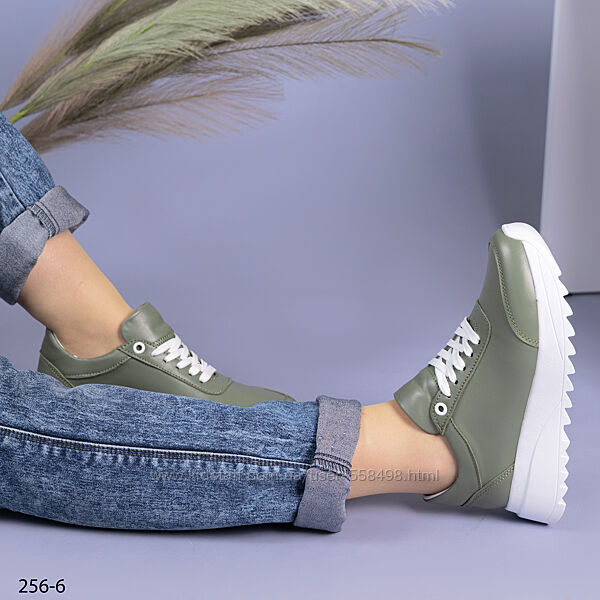 Подробное описание: Шкіряні жіночі кросівки бежового, оливкового та білого кольору