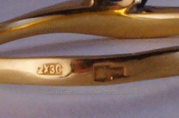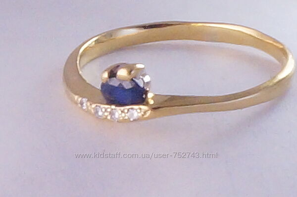 Золотое кольцо 750 пробы с бриллиантами 0.03кт. И сапфиром