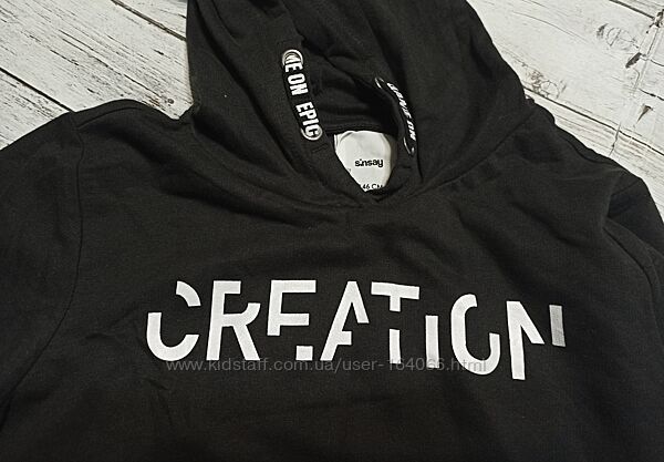 Маломірять,звіряйте заміри!Худі чорного кольору з написом, з кишенею-кенгуру та капюшоном.В капюшоні підклад бабовняна тканина та куліска.Худі гарної якості,неутеплена,двунить.Рукава та пояс на резинці.