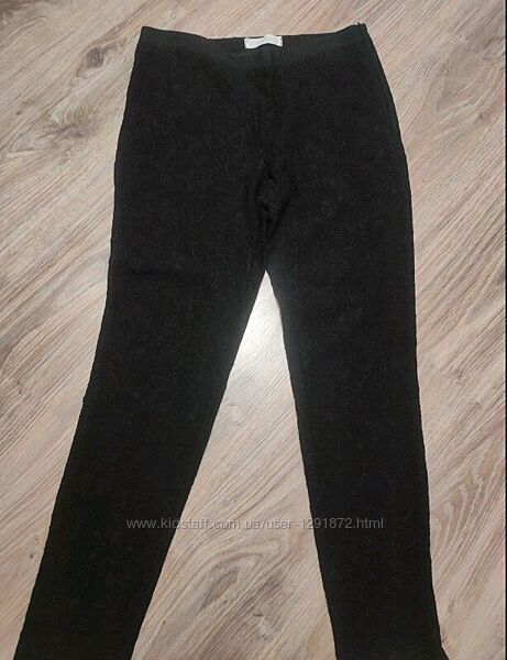 Стильні жіночі завужені брюки чорні з гіпюрового мережева, не світяться на котоновій основі(трикотаж бавовна) від італійського виробника Vicolo\Italy\ нові, без бірок по бокам 2 прорізні кармани, с боку потаємна блискавка, по бокам на штанинах є маленькі розрізи розмір вказаний S, за рахунок єластичності матеріалу підійде і на М, йдуть на 2 розміри одночасно S-М(евро 36-38) ЗАМІРИ: боковий шов 89 тягнуться до 95 крок 67 тягнуться до 75см пот 37 поб 43 тягнуться 50 посадка перед 21, сзаду 27