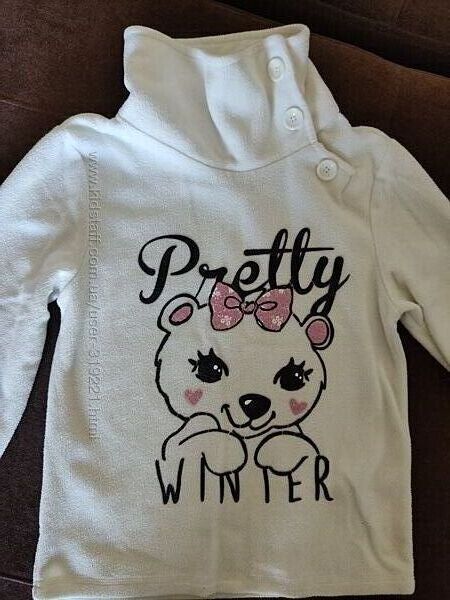 Продам б/у тепленький флісовий светрик у відмінному стані для дівчинки білого кольору, горло-стійка застібається на гудзики, гарний чіткий малюнок. Зріст 128 см.на 7-8 років. Ціна 60 грн.