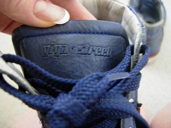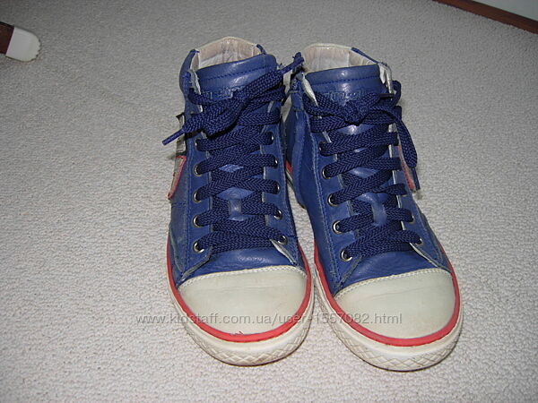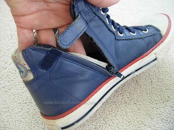 Высокие кеды на шнуровке. Синяя кожа (и снаружи и внутри). Сбоку есть замочек и липучка, для удобства в пользовании. Все рабочее. На правом есть потертость на заднике (на фото). Стелька, подошва, задники в хорошем состоянии. Размер 35.Другие объявления продавца