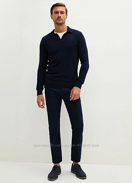Подробное описание: синій чоловічий светр LC Waiki/ЛС Вайки з відкладним коміром на ґудзиках