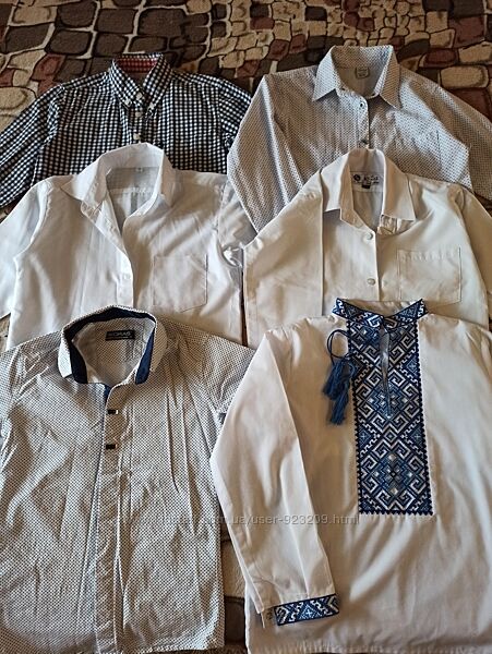 Продам сорочки в ідеальному стані, 2 з них нові, інші одягнені в школу можливо по 2 рази. Без дефектів. Заміряла рукава, інші мірки зніму додатково по конкретній сорочці, яка вас зацікавить.2 білих нових, по 150 грн.