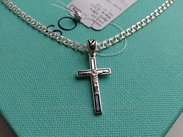 Подробное описание: Комплект Серебряная цепочка бисмарк 55 см4мм и крестик с ювелирной эмаль