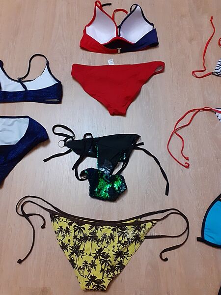 Купальник темно-синий с люрексом, блестящий глубокий темно-синий оттенрк, размер l, верх как топ тонкий поролон на чашку б , плавки высокая посадка , спереди подшиты Цена 70 грн Верх темно-синий с бордовым, пуш ап на чашку 75 б-с цена 50.0 грн Плавки бордовые не ´родные´ размер s Плавки новые с паетками размер s Плавки желтые тропики с зади пальма из камешков размер s-m Цена 50.0 грн Купальник дисней Minnie размер м ,чашка а-б, без поролона, можно вставить Цена 70 грн Верх спортивный, мягкий поролон без косточки на чашку б-с