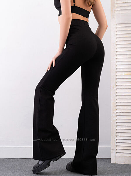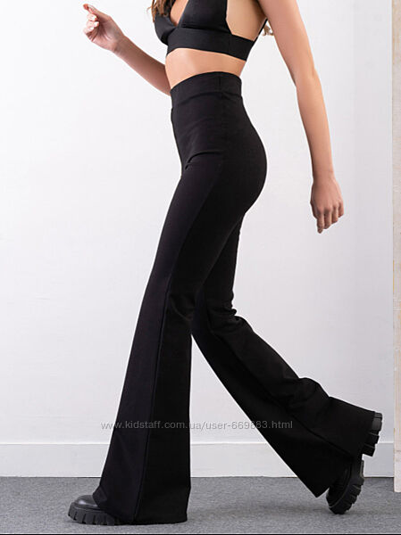 Чорні брюки клеш від коліна, вироблені з практичного стрейч-котона. Модель високої посадки оснащено еластичною гумкою в поясі.Розмірний ряд: S, M, L, XL