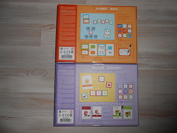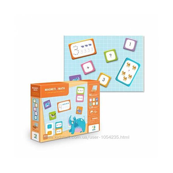 Продам отличные обучающие магнитные наборы Dodo: математика, английский язык.1. Настольная игра Dodo Magnetic math поможет ребенку интересно и познавательно провести время.Игра познакомит ребенка с числами, основами счета и арифметическими действиями. Можно играть с картами, учится писать или добавлять построение примеров с магнитов. Комплектация: 139 магнитных элементов, 80 карт с заданиями, магнитная доска, сухостираемый маркер. Размер магнитной доски 21х30 см.,размер магнитов 2,4х2,4 см., размер карточек 5,6х8,7 см. Развивает: изучение цифр, обучение счета, развитие мелкой моторики,памяти, внимания, сенсорное восприятие. Возрастная категория 5+.Цена: 300 грн.