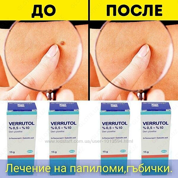 Verrutol необходимо наносить 2-3 раза в день только на бородавку, а не на кожу вокруг нее.
